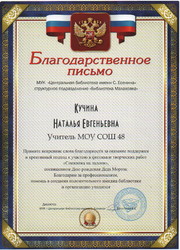 Благодарственное письмо за поддержку участников фестиваля.