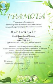 Диплом III степени и грамота за участие