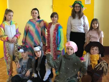 Поставили спектакль "Новый Теремок", соревновались во всевозможных конкурсах, рисовали нос снеговику с закрытыми глазами!